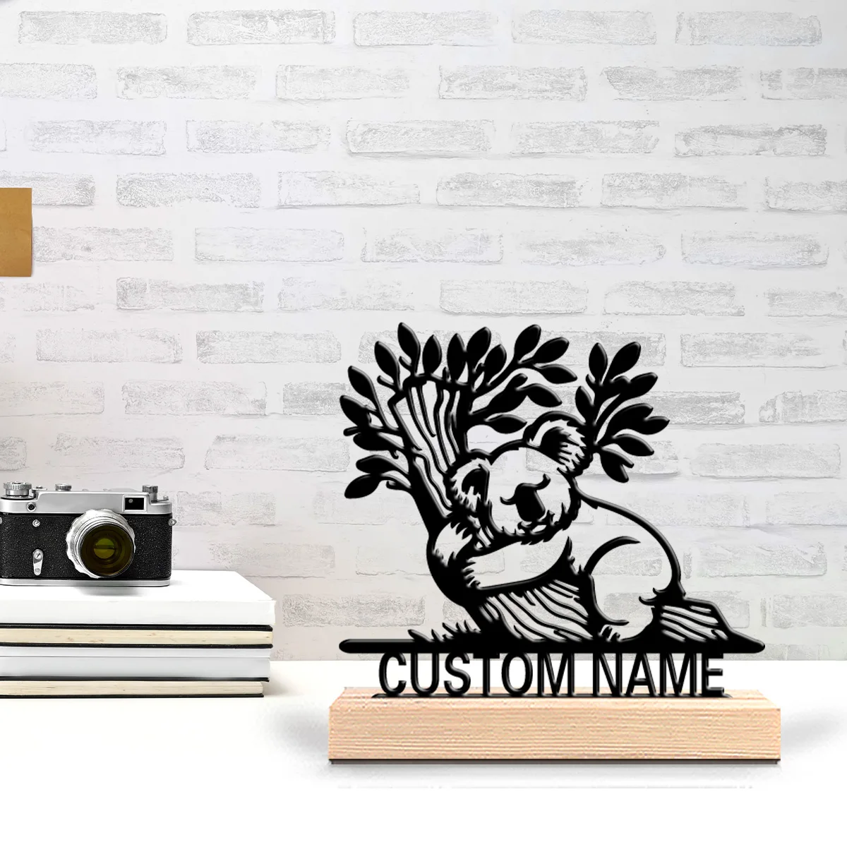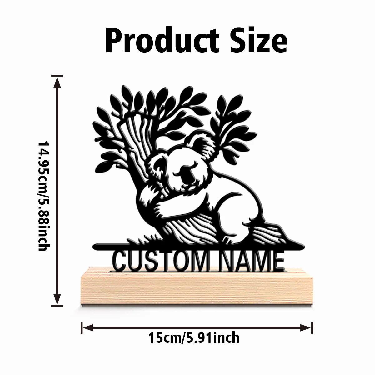 Custom Koala Metal Statues Desktop Sculpture With Wooden Base