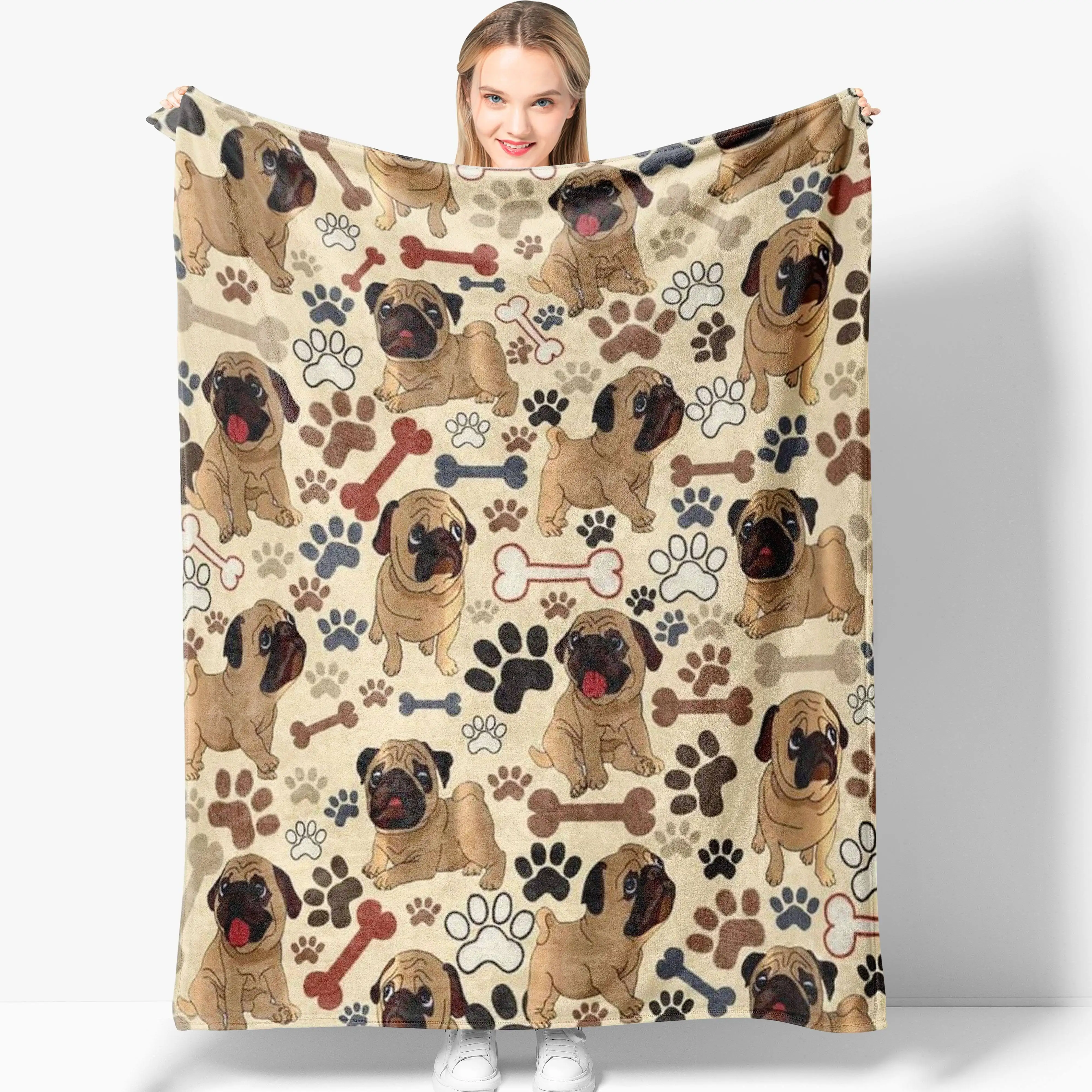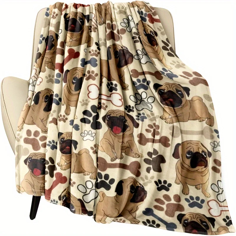 Ultra-Soft Pug & Dog Paw Print Flannel Throw Blanket - Perfect for Couch, Bed, Office, and Travel -