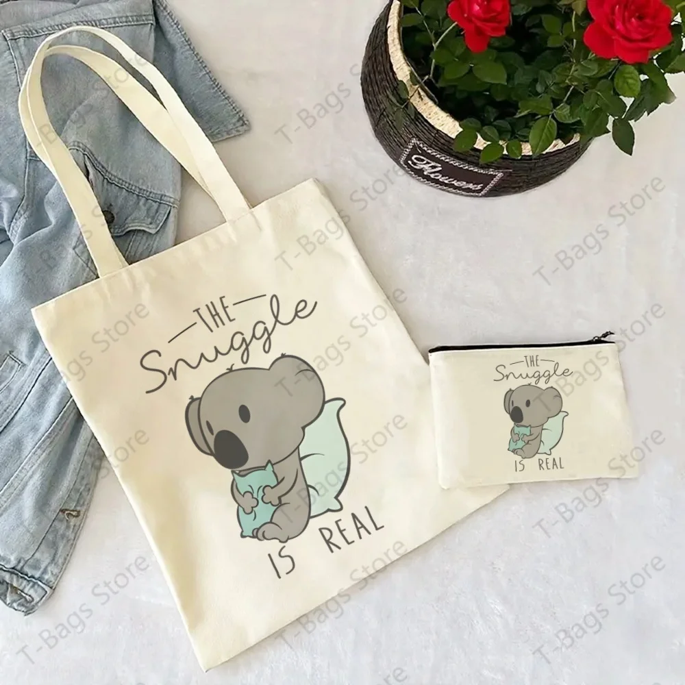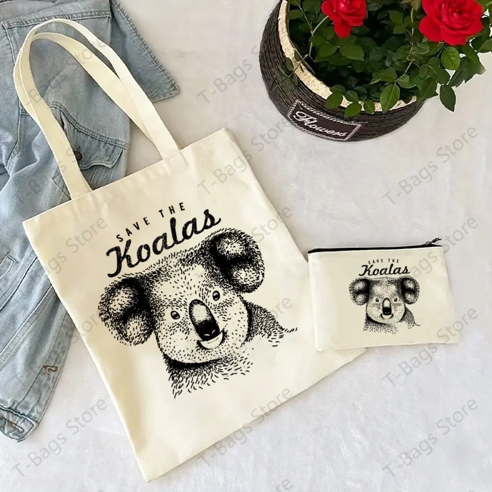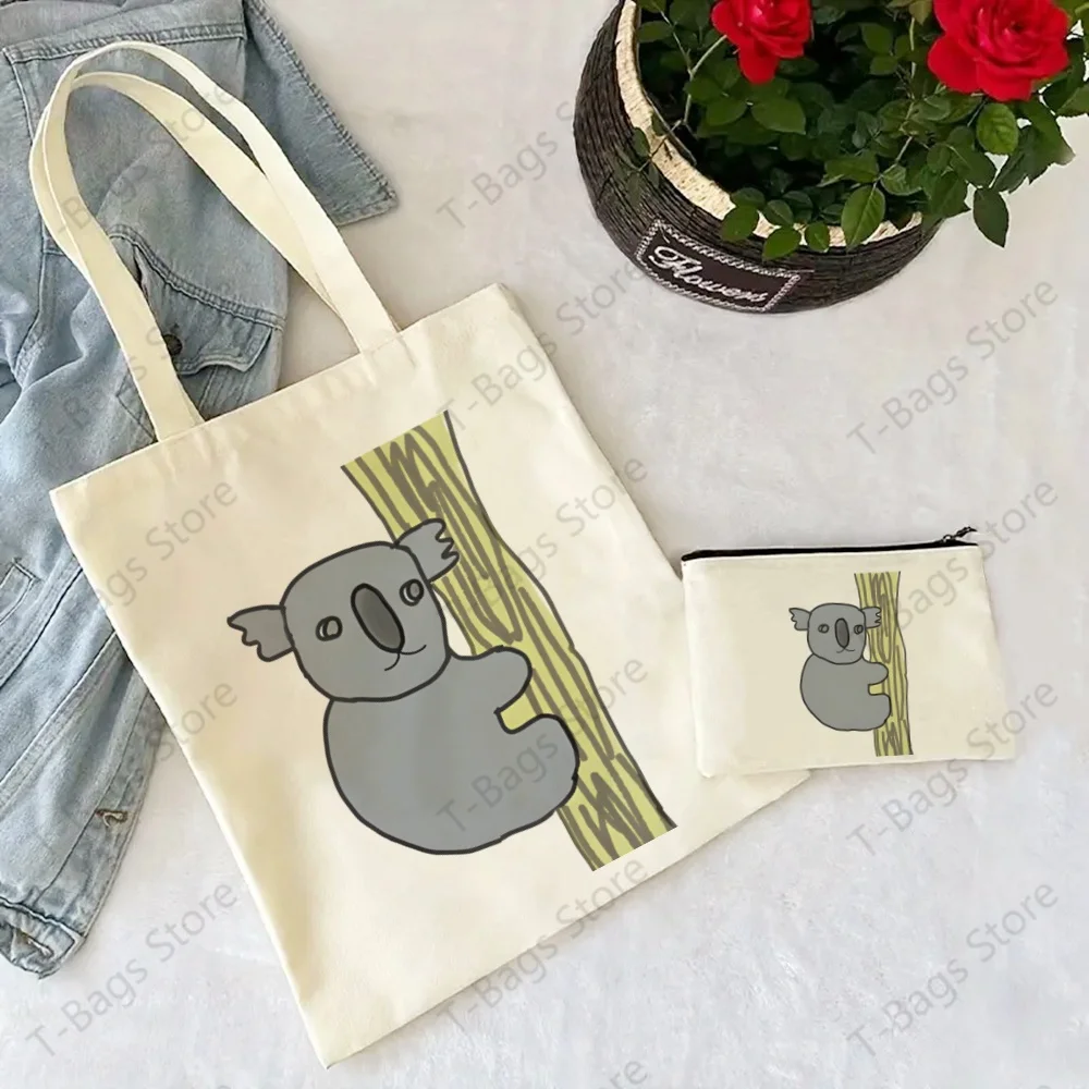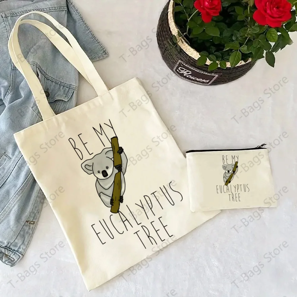 Koala Cute Animal Be My Eucalyptus Tree Tote Set - Women's Spacious Shoulder Bag with Easy Access & Matching Clutch Pouch