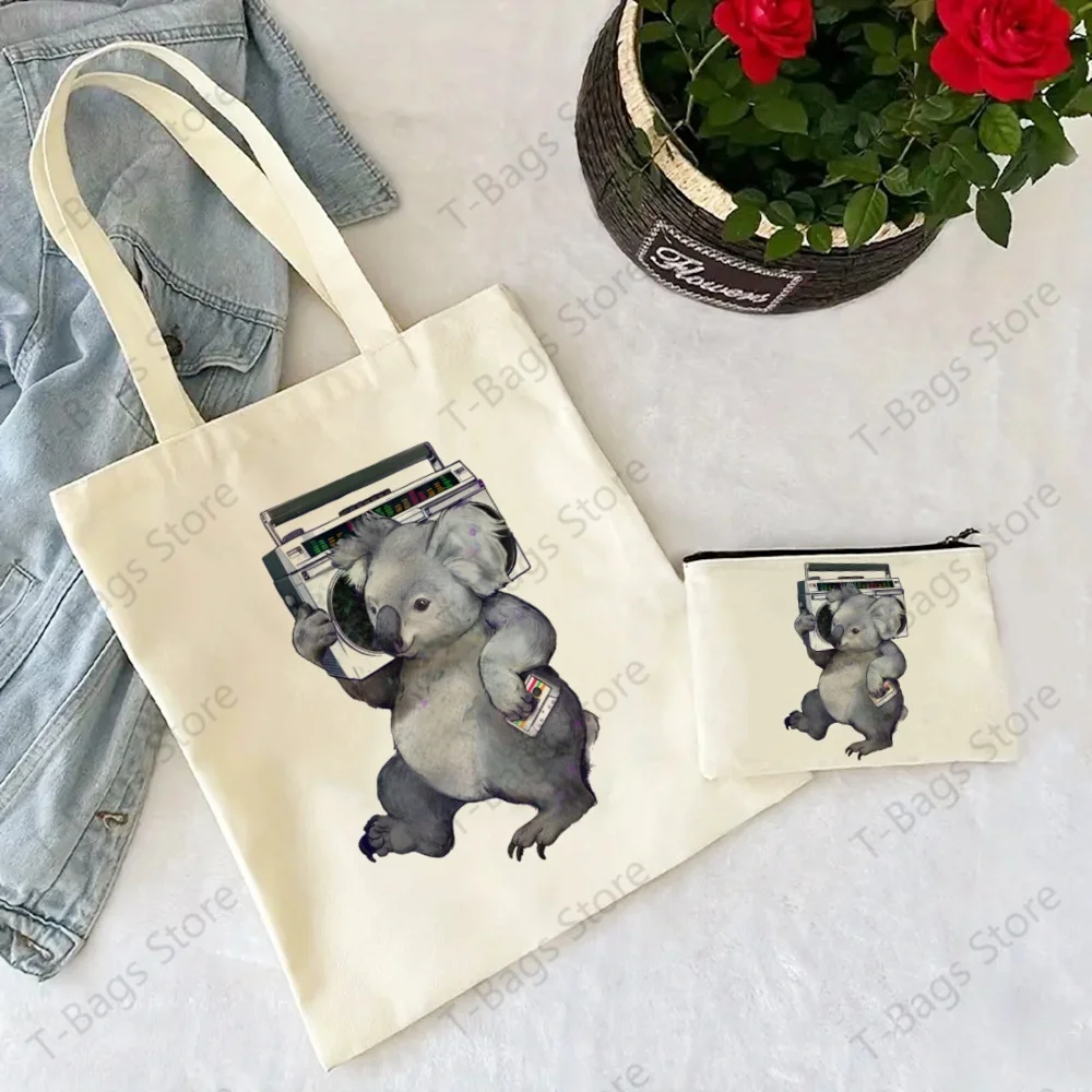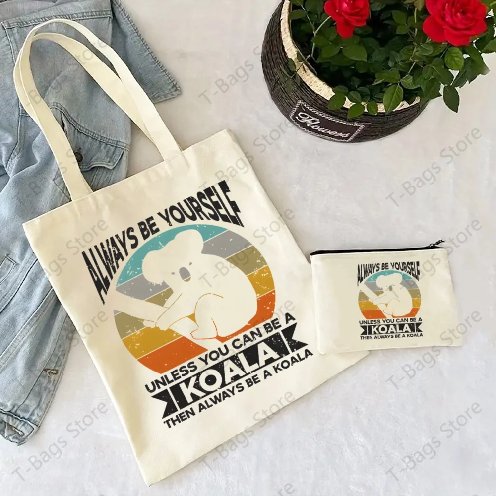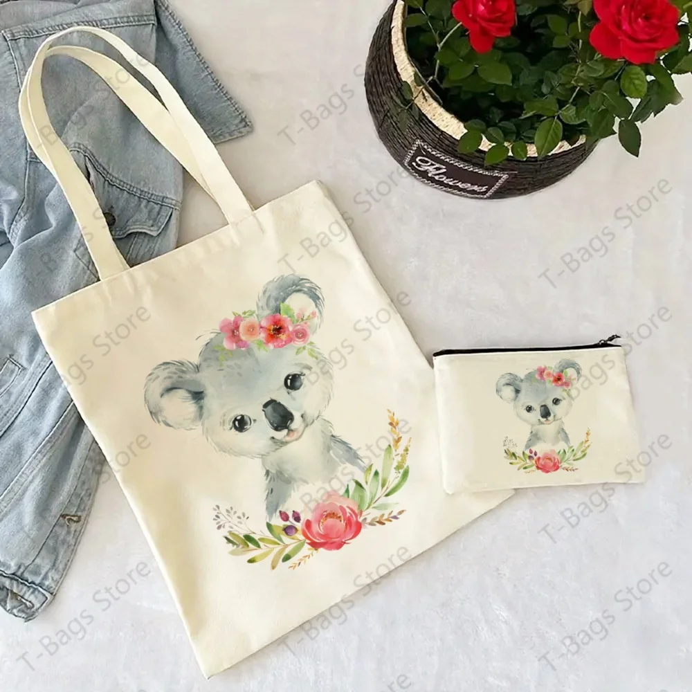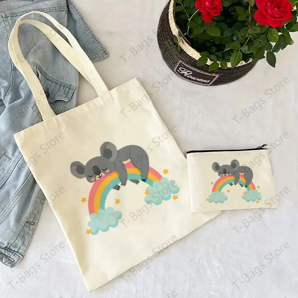 Koala Cute Animal Be My Eucalyptus Tree Tote Set - Women's Spacious Shoulder Bag with Easy Access & Matching Clutch Pouch