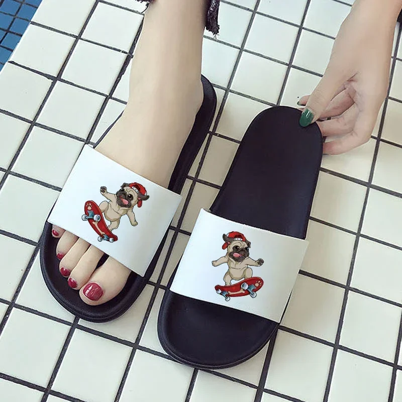 Pugs Cute Dog Print Fun Pattern Slippers Summer Beach Fashion Open Toe Slippers Printed Women's Non-slip Slides
